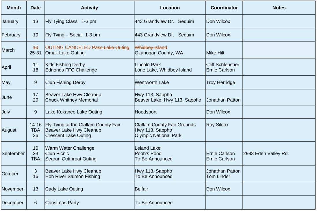 2026 Outing & Event Schedule